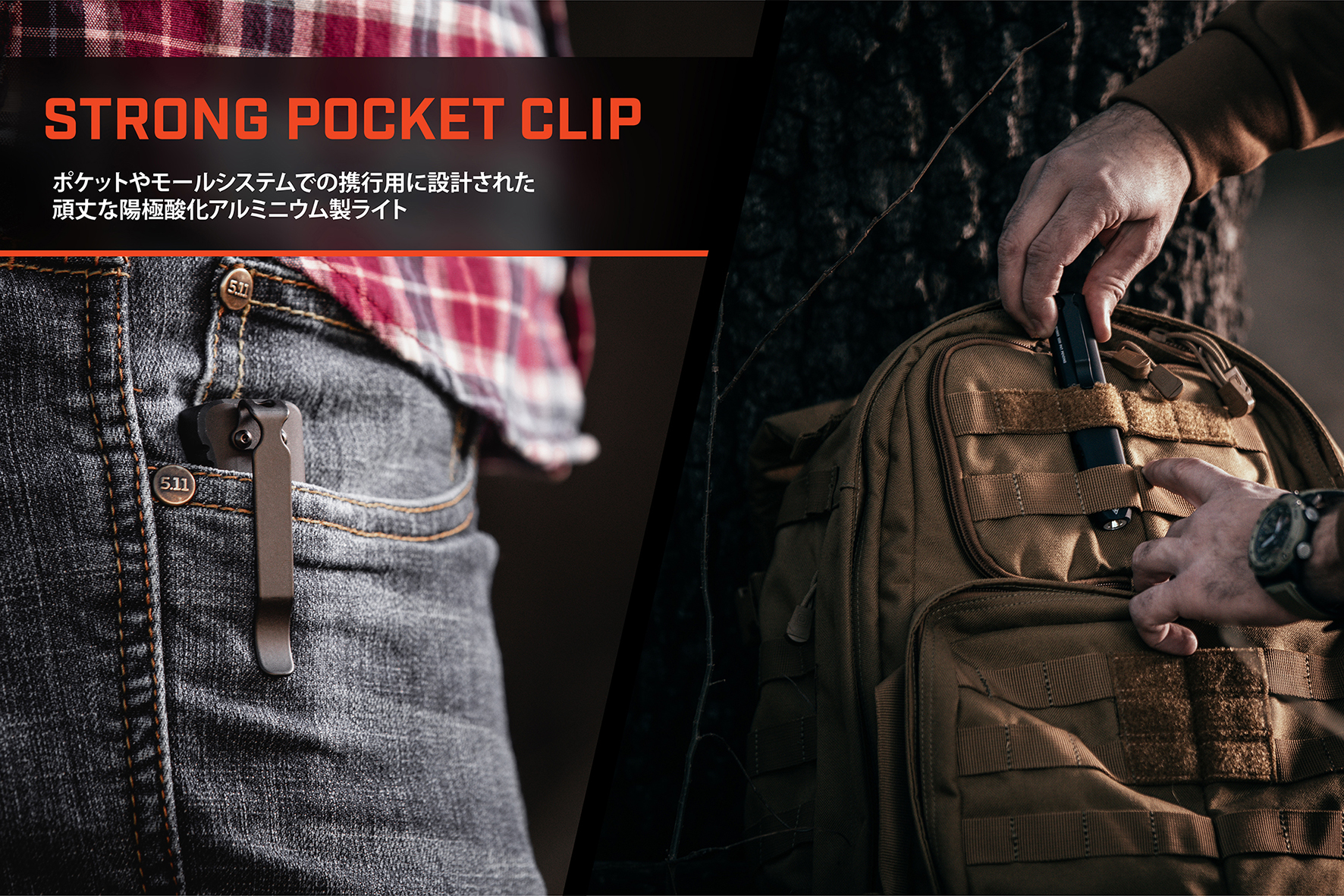 ■ライトの両側に取り付けられる深めのキャリーポケットクリップ
